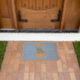 This awesome coir doormat features an adorable image of a happy bunny created using vector art. The bunny is grey and it has a big smile on its face. The bunny is hatching from an egg. This weird and funny design is sure to amuse anyone.
