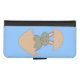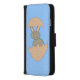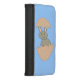 This awesome wallet style phone case features an adorable image of a happy bunny created using vector art. The bunny is grey and it has a big smile on its face. The bunny is hatching from an egg. This weird and funny design is sure to amuse anyone.