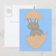 This postcard features an adorable image of a happy bunny created using vector art. The bunny is grey and it has a big smile on its face. The bunny is hatching from an egg. This weird and funny design is sure to amuse anyone.