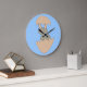 This awesome clock features an adorable image of a happy bunny created using vector art. The bunny is grey and it has a big smile on its face. The bunny is hatching from an egg. This weird and funny design is sure to amuse anyone.