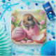 Cute bunny sits inside a cracked Easter egg with vibrant flowers and festive atmosphere, symbolizing springtime and holiday charm