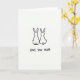 This card features two long-eared animal figures shown from behind, sitting close together on a wide white background, their shoulders nearly touching like close friends sharing a quiet moment ❤️. Their simple outlines are drawn in black, with rounded heads, upright ears, and small fluffy tails that add a soft, affectionate touch. The empty space around them keeps the focus on their closeness and the gentle, unspoken bond in their posture. Centered beneath the illustration, the words “LOVE YOU MUM” appear in casual, hand-drawn lettering. The text is also black, standing out clearly against the white space and lining up neatly under the pair. With no added scenery, the scene feels calm and intimate, like a small pause in the day meant just for her 🌼. The two figures are seated side by side, outlined in black with circular tails and tall ears against a plain white field.