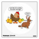 A Hen and her Chicks "Look kids, he's making chocolate mini-eggs." The chicken says as they watch the bunny rabbit. The bunny silently giggles "hehehe" because he knows he's pooping. Funny Easter cartoon / comic.
