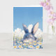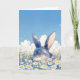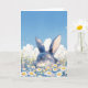 A peaceful black and white rabbit rests among a bed of blooming daisies under a bright blue sky. The rabbit's eyes are closed, exuding a sense of contentment and relaxation. Soft clouds float in the background, complementing the gentle watercolor-like texture of the scene. The detailed floral meadow, filled with white and yellow daisy blossoms, enhances the serene and idyllic atmosphere. This charming image captures a tranquil moment in nature, making it perfect for those who love rabbits, flowers, and the beauty of springtime.