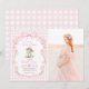 Bunny Pink Bow Gingham Baby Shower Photo Invitation