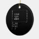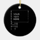 Lightweight, smooth, pure white ornament with nice sheen. Perfect size to be seen from across the room ... and to attract closer inspection! Price was great for ordering enough for the whole family! Clear, bold black design just as requested. Matches the order exactly. Just so nice!