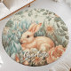 Hop into a world of sweetness with this adorable Bunny Rabbit Nursery Rug. This charming design features a cuddly bunny nestled amongst a bed of wildflowers, creating a soft and playful atmosphere for your little one's nursery. Personalize it with your child's name for a unique and heartwarming touch. This cozy rug is perfect for adding a touch of springtime charm to any nursery or playroom.