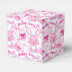 Graphic cute bunny rabbits and Easter eggs patterned pink white Easter gift box. Ideal for filling with Easter gifts. Could also be used for wedding favors or birthday celebrations filled with sweets or gifts around Easter time or for Easter egg hunts. © Unique graphic art and pattern design by Sarah Trett.
