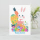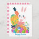 Bunny Rabbit Happy Easter Holiday Card. A cute rabbit with his carrot guarding the Easter eggs.