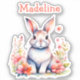 A sweet little bunny rabbit surrounded by pink and coral flowers watercolor illustration personalized sticker.