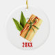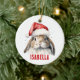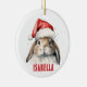 Add some bunny cheer to your holiday tree with this personalized Christmas rabbit ornament! Featuring a fluffy watercolor bunny wearing a red Santa hat and your child's name in bold red type, this ceramic ornament makes a heartwarming keepsake for animal lovers, toddlers, or baby’s first Christmas. A sweet and personal gift that will be treasured year after year.