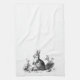 Vintage image of Bunny Rabbit in black on white kitchen towel.
