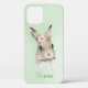 Cute pastel green phone case with watercolor floral bunny rabbit. Add your name and make this case as cute as can be. This design can be transferred to many other phone models and brands.