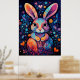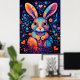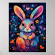 Bunny. Detailed with large ears and cute eyes. Doodles and small patterns on the rabbit. Swirls, hearts and flowers.