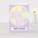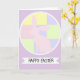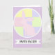 Designed with a gentle spring palette, the card centers on a soft pink bunny silhouette 🐰 set inside a bright white circular frame. Within that circle, a neat checkerboard of pastel squares—pale yellow, light lavender, light green, and faint pink—creates a sweet, close-knit backdrop that feels like a shared moment. The circle sits on a smooth lavender background that keeps everything calm and unified, like two friends lingering in a quiet garden. Just below, a white ribbon banner stretches across, adding a cozy space for the greeting. The message is written in black, hand-drawn lettering placed across the middle of the banner, standing out clearly against the white. A small 🌷 touch comes through in the springlike color choices and the gentle contrast between the pink bunny and the pale squares. The final look shows the pink bunny centered in the white circle above the white banner on a lavender field.