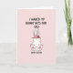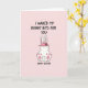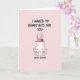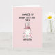 This greeting card features a soft pastel pink background with a white rabbit centered in the middle, outlined in black for a simple, graphic look 🐰. The rabbit is shown from behind, and its round fluffy tail and wide back paws create a cheeky, affectionate pose that feels like it’s teasing someone it likes. Tiny pink pads on the paws add a gentle touch, and a small light-pink hat with a deeper rose-colored flower sits on its head like it dressed up for a special date 🌷. Across the top, large black hand-drawn lettering reads, “I WAXED MY BUNNY BITS FOR YOU,” spaced to span the upper area above the rabbit. Under the rabbit, the words “HAPPY EASTER” appear in the same black, casual lettering, centered near the lower portion of the design. The limited colors—pink, white, and black—keep the joke front and center while the rabbit’s posture suggests a flirty, friendly confidence. The hat’s brim is rounded, the flower is a darker pink accent, and the rabbit’s tail sits like a neat white circle against the pink field.