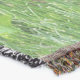 A quality printed throw has its advantages. This is a much finer weave throw than its loopier cousins, and though lighter, it is worth the investment for custom room accessorizing. The back is much prettier than the typical brown, and the fringe on the long sides very vivid, the selvage nicely done. Before photographing, I washed the throw in cold water, delicate, with a thicker woven throw the same size. On tumble dry low, this throw was dry in half the time as the other. This is a very practical quality if you use throws for furniture covers or to wrap up in frequently. The sleekness of the fabric makes it a great layer for accenting or protecting without the feeling of sitting on too much stuff. Perfect for napping or when you feel a light chill coming on. The color printing is beautiful and on this fabric, matched the design and color of my Photoshop image. This is an advantage for blending room fabrics and colors. The fringe on the short sides prints the colors from the design image and therefore varies from the side fringe. I streaked a white fractal line through the plaid pattern to give the illusion of weaving. This printed as crisp as an illusory thread, and put some white in the short side fringe, showing another advantage of print vs loomed- for artistic purposes, line lines, detail, and color integrity can be planned and preserved. My loomed throws have color limitations and more of a needlepoint texture. Print throws reproduce an exact image. The throw felt a little stiff straight out of the package, but this went away in the first delicate wash. Of course I searched the wash water for ink or bleeding and there was none.