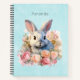Spiral notebook with a watercolor image. A white gray bunny rabbit surrounded by a garland of pink and peach roses. For bunny lovers and Easter themes and birthdays and showers.
