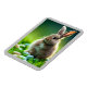 This magnet shows a darling brown and white bunny enjoying the sunshine of spring as she sits on the grass with colorful candy eggs near her feet.