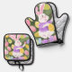 bunny with easter eggs oven mitt & pot holder set