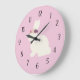 Bunny with Flowers Wreath Pink Decor Large Clock