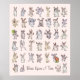 Say "Buns Upon A Time" with 39 funny bunnies on pale pink background. This whimsical kids wall art of cute cartoon rabbits is the perfect kids bedroom accent.