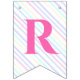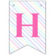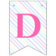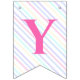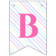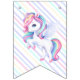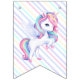 Bunting Flags to a magical birthday party with an adorable unicorn with wings in the clouds on a rainbow background.