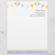 Professional party planner business or fun everyday letterhead in purple, grey yellow and aqua green blue hues. Perfect for professional events planners, entertainers or just for everyday and event use. Edit this letterhead with your name and contact details. Unique design by Sarah Trett.