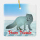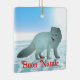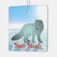 White on white. A digital painting of an Arctic Fox, Vulpes lagopus, on the polar ice. The sun hangs low in the bright blue arctic sky. Do not stare at the sun as it can harm your eyes. Italian text reading, "Buon Natale" appears in red. The Arctic Fox is comfortable in deep cold; it does not begin to shiver until temperatures drop to about −70 °C (−94 °F) due to its dense, multi-layered fur. Other adaptations to a frigid climate include fur on the soles of its feet, short ears, and a short muzzle. Arctic foxes live in burrows, in a blizzard they may tunnel into the snow to create shelter. The coat of the Arctic fox, sometimes blue-gray, is very effective winter camouflage. The natural hues allow the animal to blend into the environment. During the short warm season its coat changes to brown or gray, again acting as camouflage in tundra rocks and plants. During the winter, when prey is scarce, the foxes follow hunting Polar Bears on the ice pack feeding on scraps. During the summer the eat rodents, birds, eggs, and even fish. They will also feed on berries and seaweed. Arctic Foxes have extremely keen hearing, aided by their wide, front-facing ears, which allow them to locate the precise position of their prey beneath the snow. If it hears something moving under the snow it leaps into the air and pounces, punching through the snow to catch its prey. The range of the Arctic Foxes is circumpolar; they can be found throughout the far north. The only land mammal native to Iceland, it arrived by walking oversea ice at the end of the last ice age.