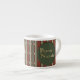 Buon Natale Espresso coffee cup. Muted colors of red, green and white with 3 dimensional graphics for Christmas coffee serving cups for black coffee. I usually use my own graphics but on this cup I have used a couple of wonderful backgrounds and textures that I purchased from "macatelier" one of my favorite designers at RENDEROSITY.com. This is a wonderfully unique and quitew chic design for an old fashioned Christmas.