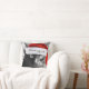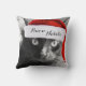 Buon Natale, Italian Cat Christmas Pillow ; Black & White photo of Black cat with Red Kris Kringle Cap; bring a little of Italy into the Christmas Season