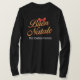 Our Pretty Buon Natale tee features a fancy script with a red bow! Personalize it with your family's last name!