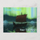 A slightly stylized image of a Viking longship sailing at night under the Northern Lights, there a couple of icebergs; most of the crew is asleep. Italian text reading "Buon Natale" appears in glowing blue and white. Add your own additional text.