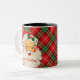 Merry Christmas Vintage Santa Plaid Mug Personalize it. A jolly vintage Santa face against a red plaid background pattern.