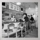 Old 1940s restaurant interior photo of White Tavern hamburger stand in Amsterdam, New York. FSA photo taken in 1941 by photographer John Collier.