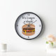 This fun wall clock says "It's burger o'clock!" Perfect for anyone who loves beefburgers, hamburgers, cheeseburgers or any kind of burger.