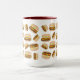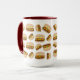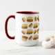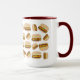 Fun coffee mug or travel cup for the person who loves to eat burgers. Illustrated big sandwich pattern covers this white mug with optional colors inside and on handle.