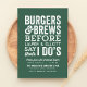 Burgers and brews before the couple says their I do's! This fun brewery-themed rehearsal dinner invitation is a fun way to invite friends and family to celebrate the night before the wedding. Customized to include the couple's names, this pre-wedding invite features bold white text on a green background (please not this is not text but just printed to look like it). This also works well for a casual engagement party, bachelor party and more. Customize all the details of the party. Matching party decor also available in the collection exclusively by Lea Delaveris Design. Also available as a digital rehearsal dinner party invitation.