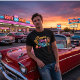 The bold, glowing design pops against the classic black shirt, making it the ultimate conversation starter whether you’re grabbing a late-night burger, hitting a car show, or just living that rockabilly lifestyle.