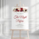 A floral design with beautiful burgundy and blush flowers wedding rehearsal, the night before sign. The text and colors on this sign poster can be edited.