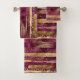 Burgundy and gold brush strokes and monogram bath towel set