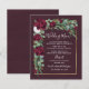 Features a wine or burgundy watercolor wash background with elegant silver dollar and seeded eucalyptus leaves with marsala/burgundy flowers. Design also features a printed gold border. NOTE: This product is best sized at 4.5" x 5.6" or 8.5" x 11." It is not recommended to purchase this item in the size 5.5" x 8.5" because said size is long and skinny. This will distort the printed gold border and other elements.