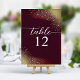 Burgundy And Gold Glitter Wedding Table Number