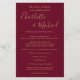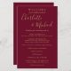 Elegant burgundy and gold signature script wedding weekend program featuring signature style names. Personalize with your wedding weekend details set in chic white lettering. Designed by Thisisnotme©