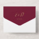 All in one burgundy and gold wedding invitation featuring elegant hearts script typography and monogram initials. The invitation includes a perforated RSVP card with your personalized wedding QR code. Designed by Thisisnotme©