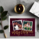 Burgundy and Gold Script Merry Christmas 2 Photo Holiday Card