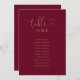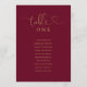 These elegant burgundy and gold heart script double-sided table number seating chart cards are perfect for all celebrations. Designed by Thisisnotme©