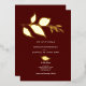 These burgundy and gold wedding invitations blend modern style with elegant botanical charm. Featuring real gold foil leaves over a rich maroon background, this fall-themed wedding invitation suite is both minimalist and stylish. Your personalized wedding ceremony and reception details are set in a clean mix of sans serif and script typography. The colors can be customized to match your perfect shade of burgundy. Explore the full burgundy gold wedding invitations collection from Do Tell A Belle on Zazzle: