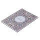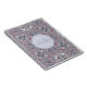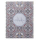 Ornate burgundy and grey kaleidoscopic pattern on personalized notebook.