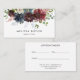 Appointment business card features a burgundy and navy blue watercolor floral drop with eucalyptus and gold accents. Perfect for hair stylist, makeup artist, salon and spa.